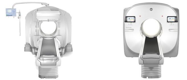 ※写真左から:従来型SPECT/CT装置(NM/CT870DR) 、新型半導体SPECT/CT装置(StarGuide)