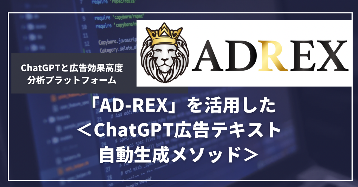 アドレクスは、ChatGPTの持つ精度の高い文章生成を可能にする自然言語処理技術を活用し、最新の広告効果分析プラットフォーム「AD-REX」で導き出した最も効果に期待できる広告クリエイティブにChatGPTの技術を掛け合わせることで、自動で最適な広告テキストをAIに作成させる<ChatGPT広告テキスト自動生成メソッド>の提供を開始いたします。