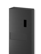 幅350mm、奥行120~180mmのコンパクトサイズながらも郵便ポストとしての機能は損なわず、業界最小クラスのスリムな機能門柱です。台形断面の門柱とすることで、奥行の狭い場所にも設置でき、郵便物をアプローチなどの横からもスムーズに取り出せます。また、凹凸のないフラットなデザインと上質感あるマットブラック仕上げは、あらゆる住宅のファサードに調和します。