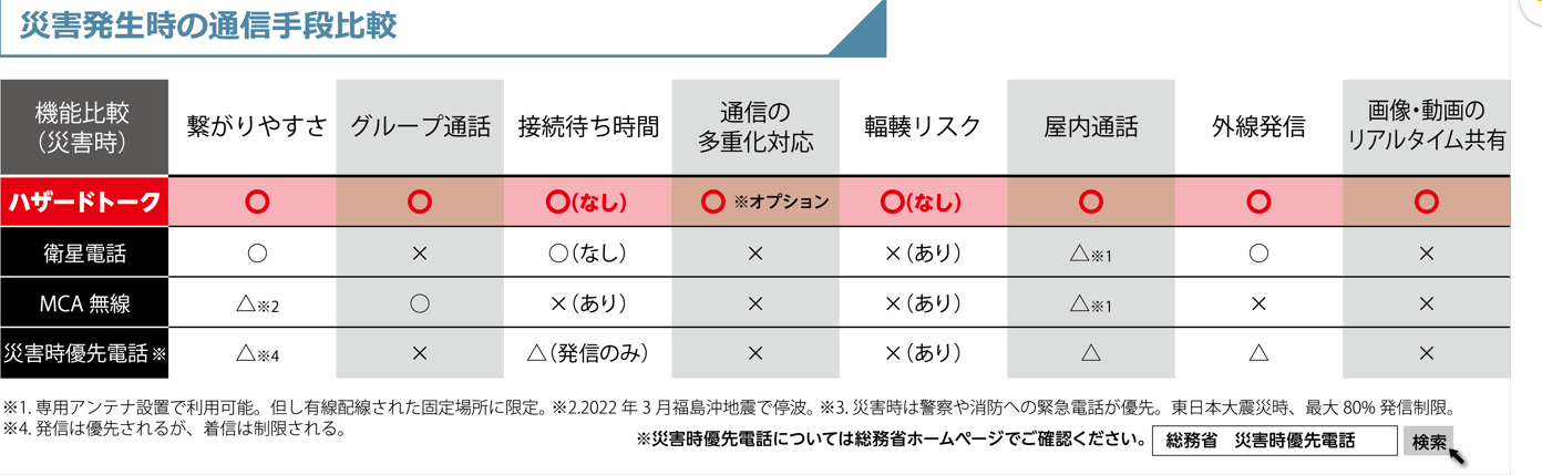 - 災害通信用危機「ハザードトーク」提供開始の背景