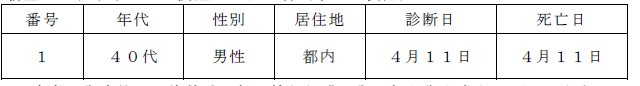 新型コロナウイルスに関連した患者の死亡について business Twitter Facebook はてブ Pocket LINE コピー 2023.04.14 この記事は約1分で読めます。 都内で新型コロナウイルスに感染した方が死亡されましたのでお知らせします。 お亡くなりになった方のご冥福をお祈り申し上げます。 1 新型コロナウイルスに関連した死亡者(本日公表分) 2 新型コロナウイルスに関連した死亡者の累計 8,079人