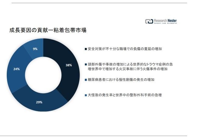 質問: 粘着包帯市場の成長を牽引する主な要因は何ですか?