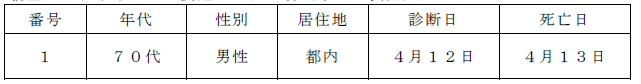 都内で新型コロナウイルスに感染した方が死亡されましたのでお知らせします。