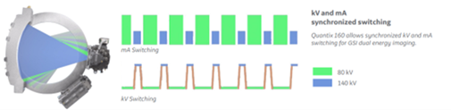 ※ビュー毎の管電圧のスイッチングに合わせて管電流も変調させるSynchronized kV/mA switching GSIの概念図