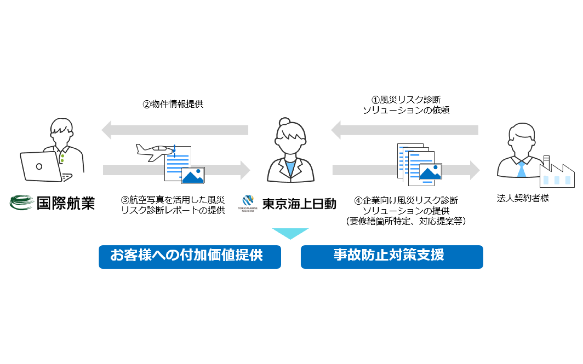 こうしたなか、東京海上日動と国際航業は、東京海上日動が保有する過去の風災に関する事故データと、国際航業が培ってきたデータ取得・判読・解析技術を活用し、お客様への新たな付加価値として、「企業向け風災リスク診断ソリューション」を提供することといたしました。