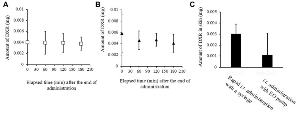 EOポンプは分速0.01mlといった単位で投薬量を制御でき、少ない量を持続して安定して投与できることが特徴です。本研究では、乳がんモデルのラットに対して抗がん剤「ドキソルビシン塩酸塩」を投与した比較が行われました。