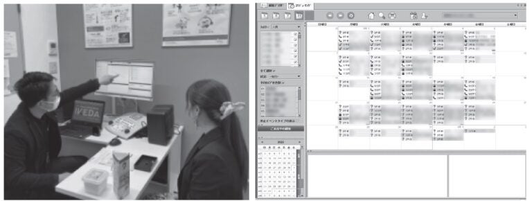 【対応の様子:海外でクリニック用に提供される予約管理・電子カルテシステムを使用】