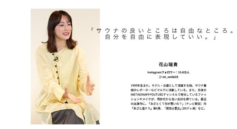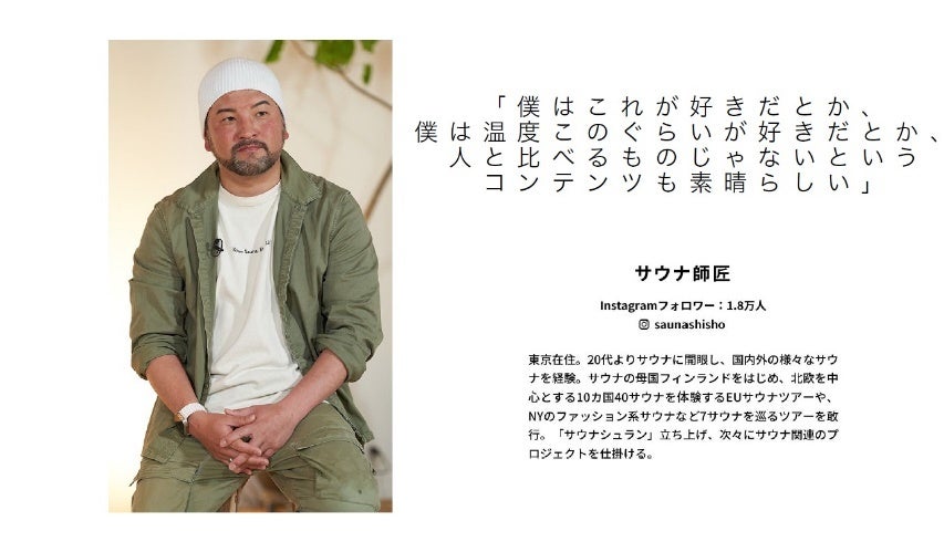 プロジェクトの初回は、「水風呂がないサウナなんて。」をキーワードに、サウナの素晴らしさを、サウナの賢人たちに語ってもらいました。登場するのは、昨今のサウナブームを牽引しているサウナ界から、ととのえ親方とサウナ師匠、そしてサウナ好きタレントとして幅広く活躍中の花山瑞希さん。3名の語るサウナ愛、世界のサウナ最新情報は必見です。