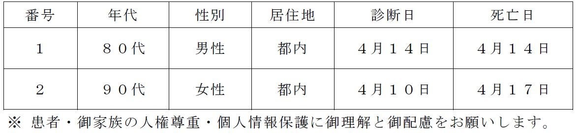 新型コロナウイルスに関連した患者の死亡について business Twitter Facebook はてブ Pocket LINE コピー 2023.04.18 この記事は約1分で読めます。 都内で新型コロナウイルスに感染した方が死亡されましたのでお知らせします。 お亡くなりになった方のご冥福をお祈り申し上げます。 1 新型コロナウイルスに関連した死亡者(本日公表分) 2 新型コロナウイルスに関連した死亡者の累計 8,084人