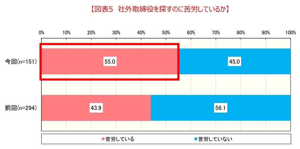 (2) その一方で、社外取締役を探すのに苦労している企業は半数を超え、前回と比較すると大きく