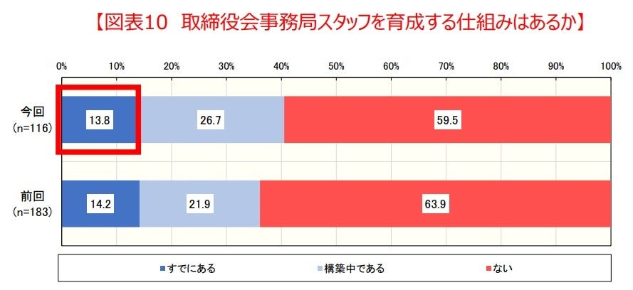 取締役会事務局のスタッフ育成について、その必要性は感じているものの、スキルの整理や育成の仕組み