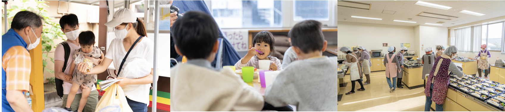 むすびえは、ビジョンである「全国に広がるこども食堂を通じて誰も取りこぼさない社会をつくる」ために、こども食堂が全国のどこにでもあり、みんなが安心して行ける場所となるよう環境を整え、こども食堂を通じて、多くの人たちが未来をつくる社会活動に参加できるように活動しています。具体的には、こども食堂の実態を明らかにし普及・啓発する調査研究、各地域のこども食堂ネットワークを支援する地域ネットワーク支援事業、企業・団体とこども食堂支援を行う企業・団体との連携事業を行っています。