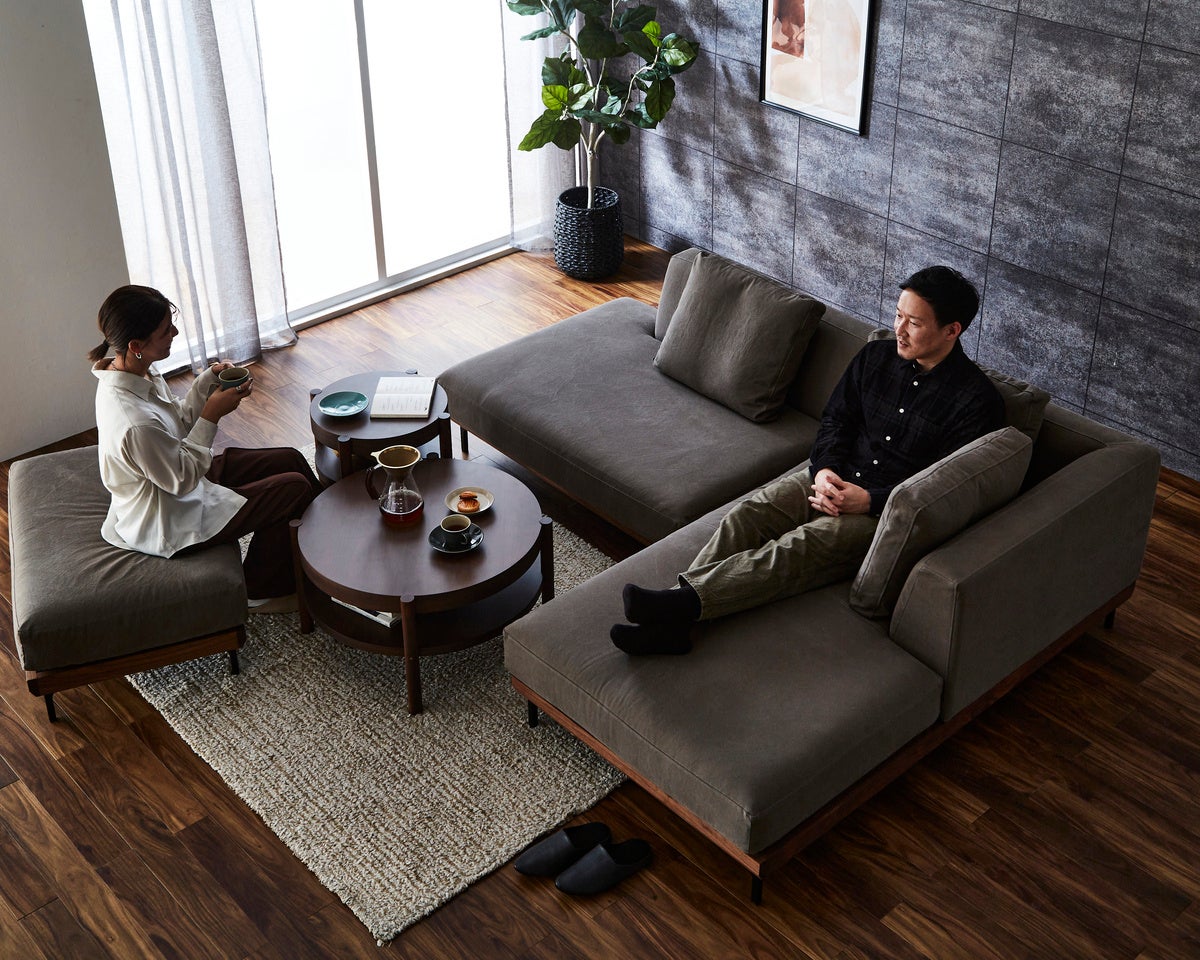 住空間のパターンを想定して設計し、国内の厳選した素材たちを掛け合わせて生み出させたソファです。