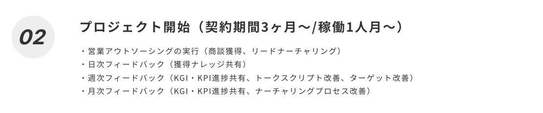 また、ターゲットリストへのナーチャリングによって有効商談を継続的に獲得する貴社専属のインサイドセールス組織を短期で組成します。