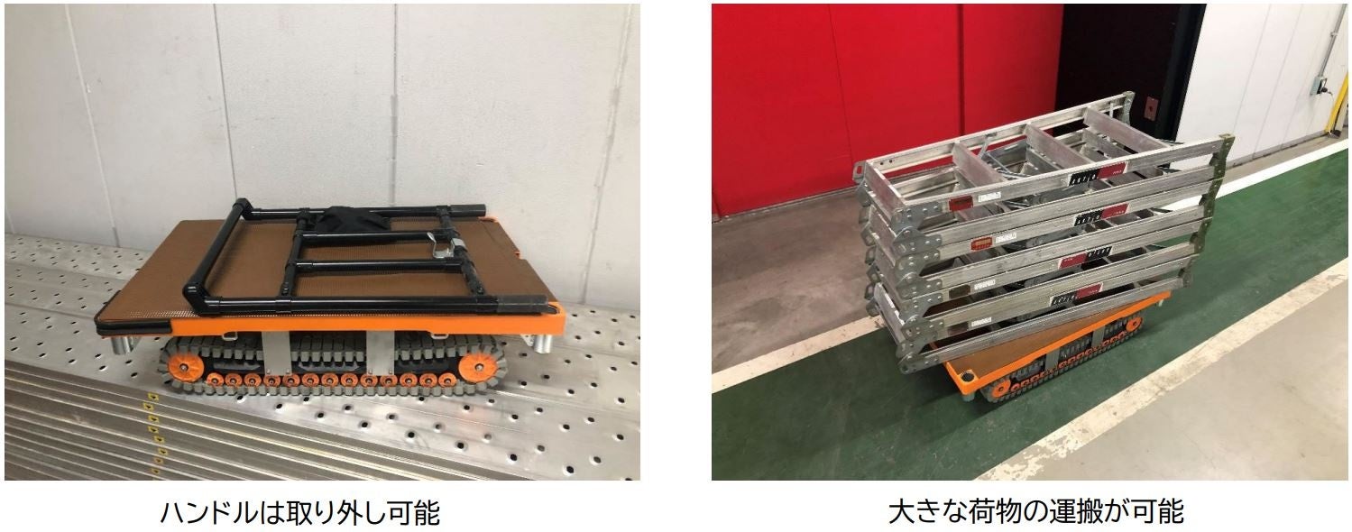 キャスターでは走行できないシーンで運搬でき、負荷が少ない搬送が可能。