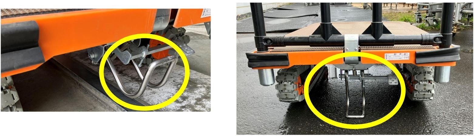 今回、従来のアクロスにフットブレーキを搭載し、アクティオオリジナル商品として開発しました。これまで、輪留めで台車を固定するなど手間だった作業が、フットブレーキにより簡単にロックや解除ができ、坂道でもしっかりと固定ができる仕様にしました。