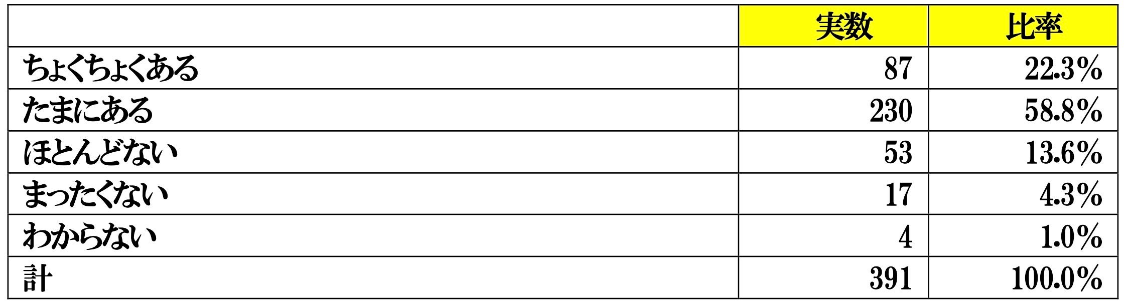 =「ちょくちょくある」(22.3%)と「たまにある」(58.8%)を合算