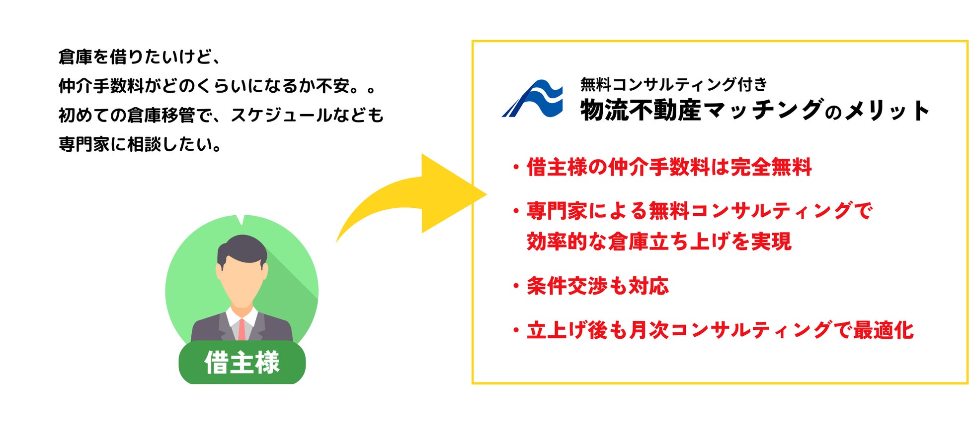 その中で、物流戦略策定から倉庫選定・引っ越し、安定稼働まで一気通貫でお客様の物流課題解決に伴走し、物流・ロジスティクス業界の生成発展に貢献すべく、この度「物流不動産マッチング」を設立いたしました。