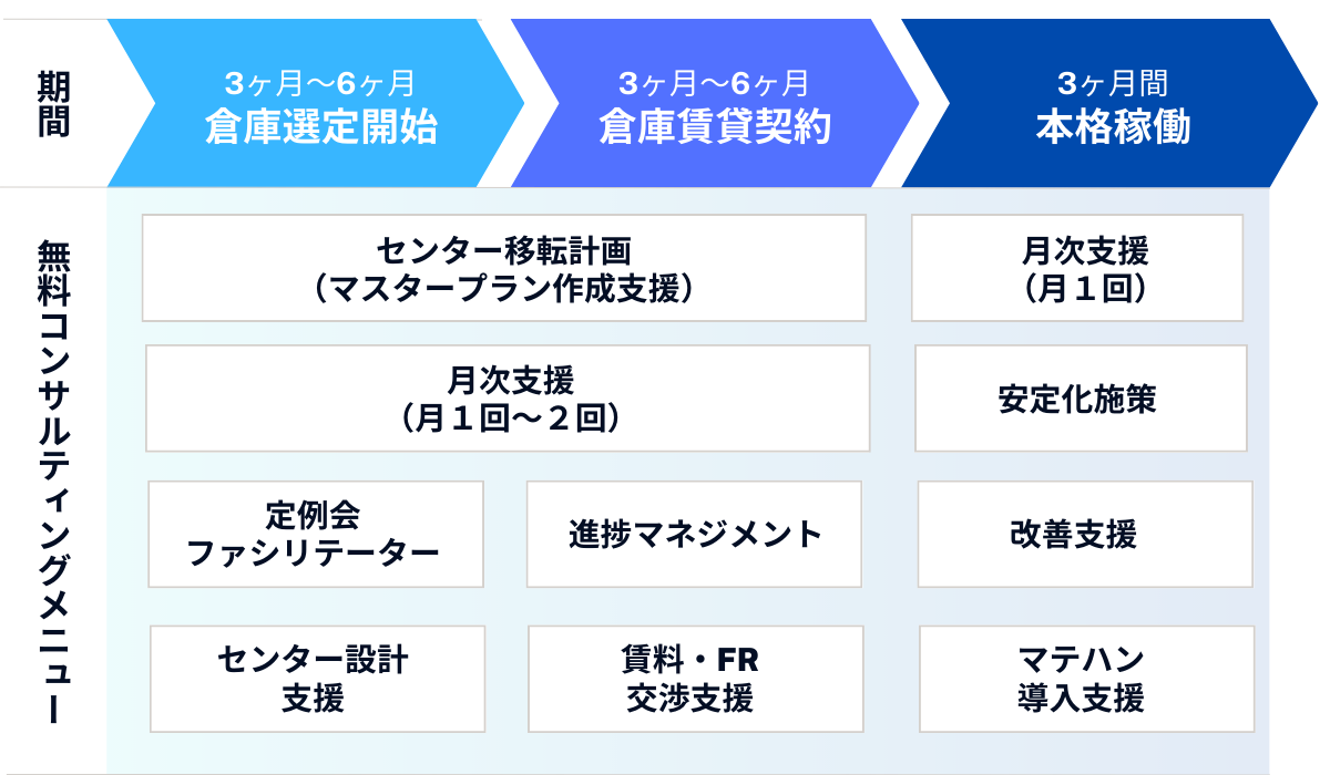 フリーレントや契約期間など専門的な条件交渉も、物流専門コンサルタントがサポートします。
