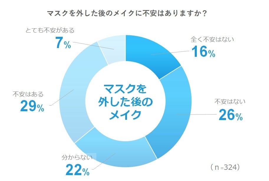 「マスクを外した後のメイクに不安はありますか」という質問に対しても、「とても不安がある / 不安がある」という回答が全体の36%に上りました。