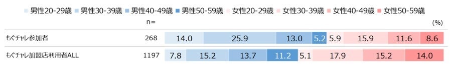 <もぐもぐチャレンジ参加者と加盟店利用者全体の性・年代層>