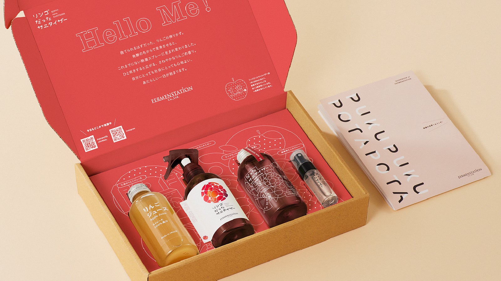 ファーメンステーションの実験的プロジェクト「PUKUPUKU POTAPOTA」では、循環を楽しむことをテーマに様々な人たちを巻き込みながら探究と実験を続けてきました。「リンゴだったサニタイザー」は、そんな取り組みの中で出会った人たちとの関わり合いの中で生まれた商品です。