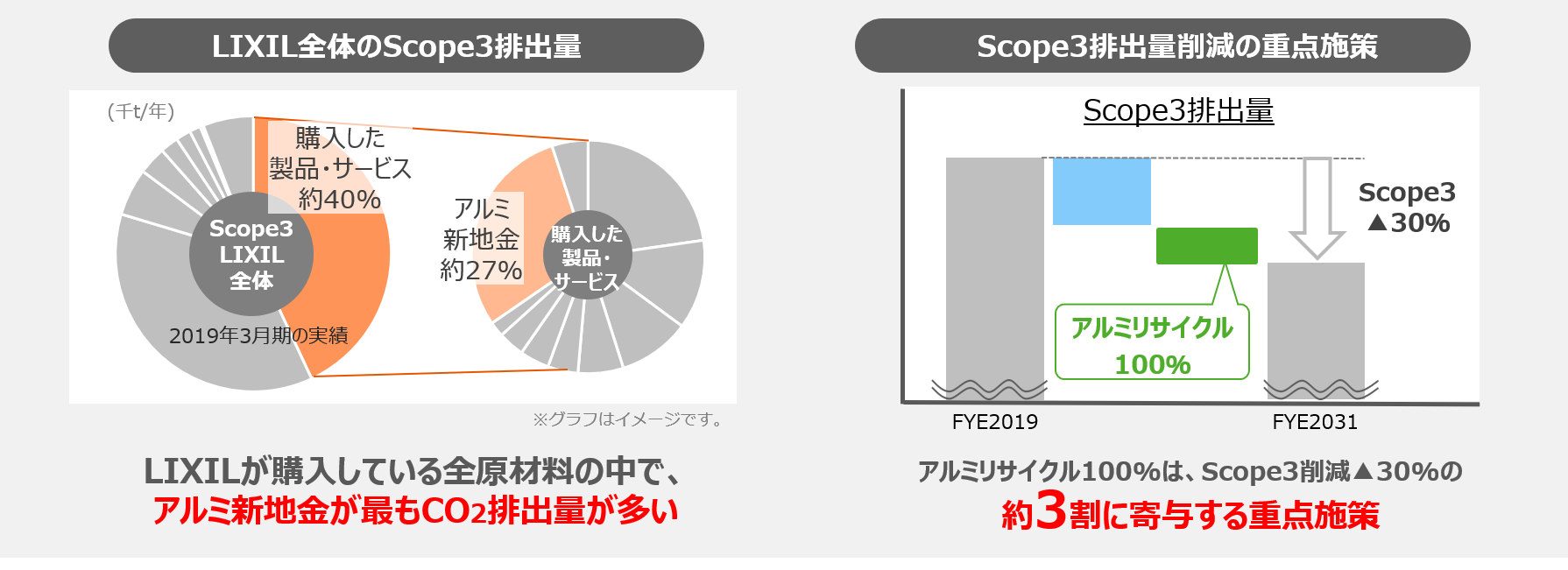 新地金からアルミリサイクル材に転換することで、新地金を製錬する際のエネルギー消費を抑え、CO₂排出量を97%削減することが可能となります。当社は、重点領域「気候変動対応の緩和と適応」におけるCO₂削減目標を上方修正し、Scope3に関しては30%削減(2019年3月期比)という高い目標を掲げていますが、リサイクルアルミの使用比率を100%にすることで、そのうちの約3割の削減に寄与する見込みです。