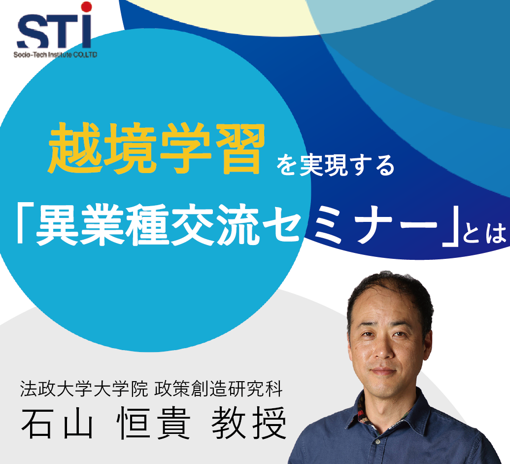 ソシオテック研究所では、この「越境学習」を体現し、創造的リーダーシップを高めることを目的とした「異業種交流セミナー」をリリース。監修者の法政大学大学院石山教授とともに、企業が越境学習を導入する上でのポイントや、異業種交流セミナーの目的・特徴をお伝えするウェビナーを開催します。
