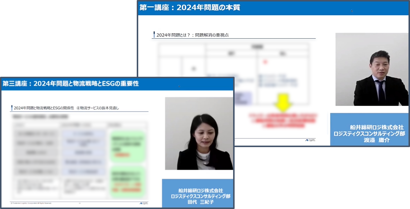 本動画では、「今なら間に合う!荷主企業の2024対策セミナー~5つの具体策とアクションプラン~」と題し、これからの物流リスクに対してどのような対応策を講じなければならないのか、何を優先して取り組むことがこれからの物流に必要なのか、具体的な物流戦略と実行までのステップをまとめています。