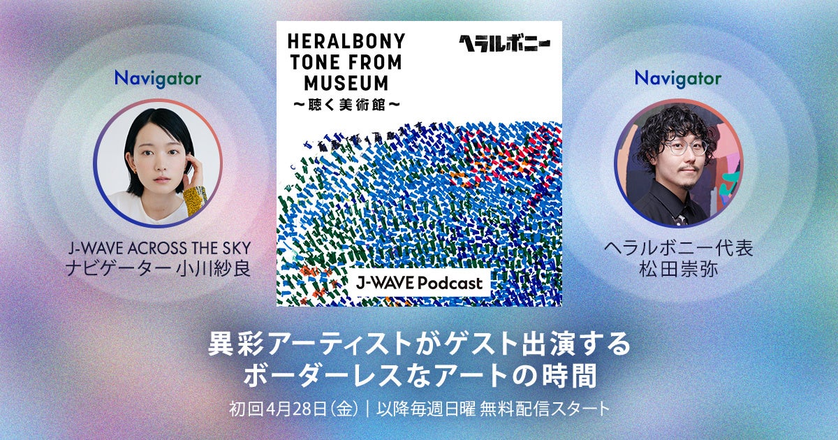 聞き手は、俳優・映像作家・文筆家として活躍する小川紗良さんと、ヘラルボニーの代表取締役社長の松田崇弥。小川さんは、J-WAVE日曜ワイド番組『ACROSS THE SKY』のナビゲーターを務めており、ヘラルボニーは同番組内のコーナー「HERALBONY TONE FROM ART」を提供しています。