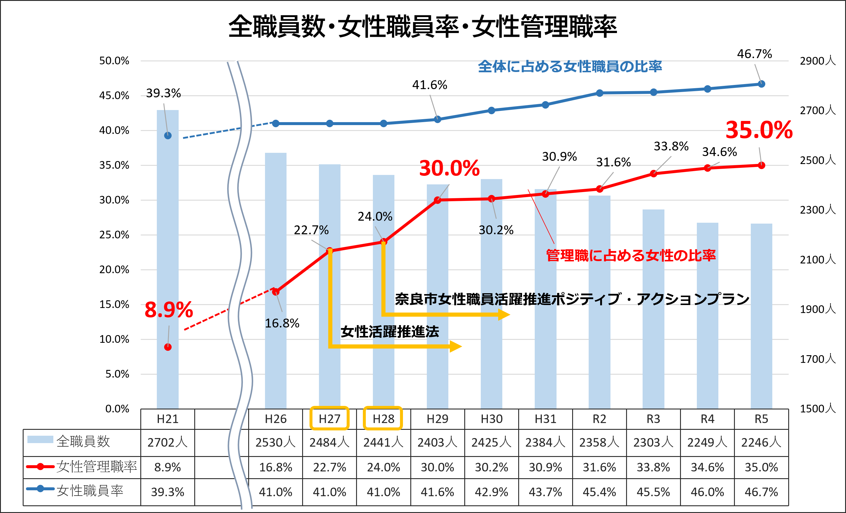 ◇令和5年度には人事課内に「人材育成室」を設置。「新しい働き方・人材”奈良市役所モデル”」の推進に着手。女性活躍や働き方改革を加速するとともに、スマート自治体に対応するための新しい人事システム・人材育成システムの検討に着手する。