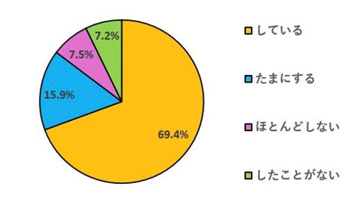 スキンケアを「している」という方が大多数で69.4%です。続いて「たまにする」が15.9%となっています。合わせると約85%の方がスキンケアをすることがわかりました。