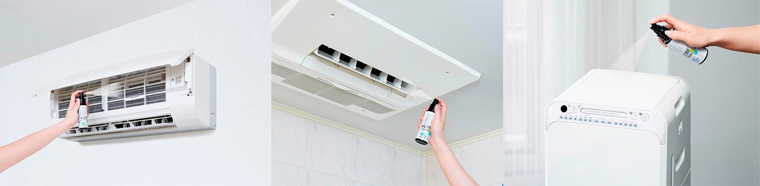 エアコンの吹き出し口やフィルター、フィンに直接スプレーするだけでカビを抑制!