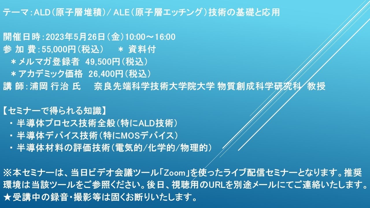 テーマ:ALD(原子層堆積)/ ALE(原子層エッチング)技術の基礎と応用
