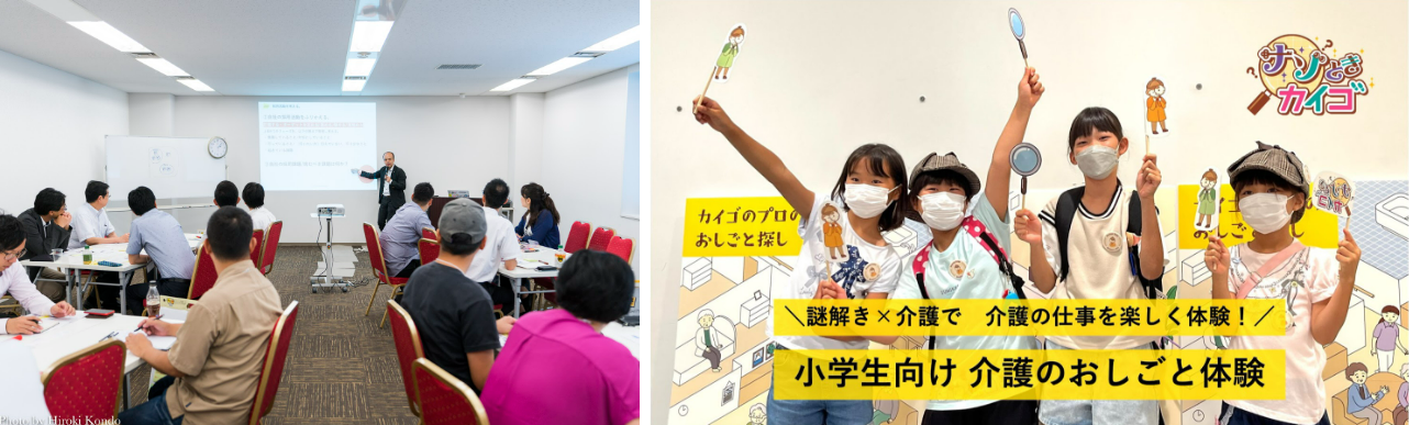 また、厚生労働省や全国の自治体などと連携し、事業者の採用力向上やリーダー・新人などの階層別研修、人材確保のための企画・広報も行ってきました。また、介護・福祉人材の裾野を広げるために、小学生向けの介護のお仕事体験イベントから、アクティブシニア向けの介護サポーターの訴求事業等、介護・福祉の魅力発信に関する事業にも力を入れています。