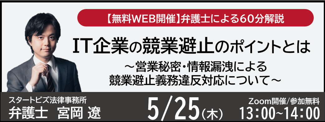 本セミナーでは、IT・Webメディア企業が整備するべき、競業避止義務違反対応における、実効性のある誓約書の具体的ポイントを分かり易く解説いたします。