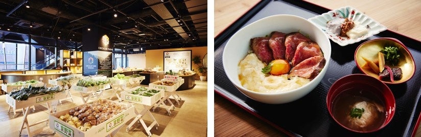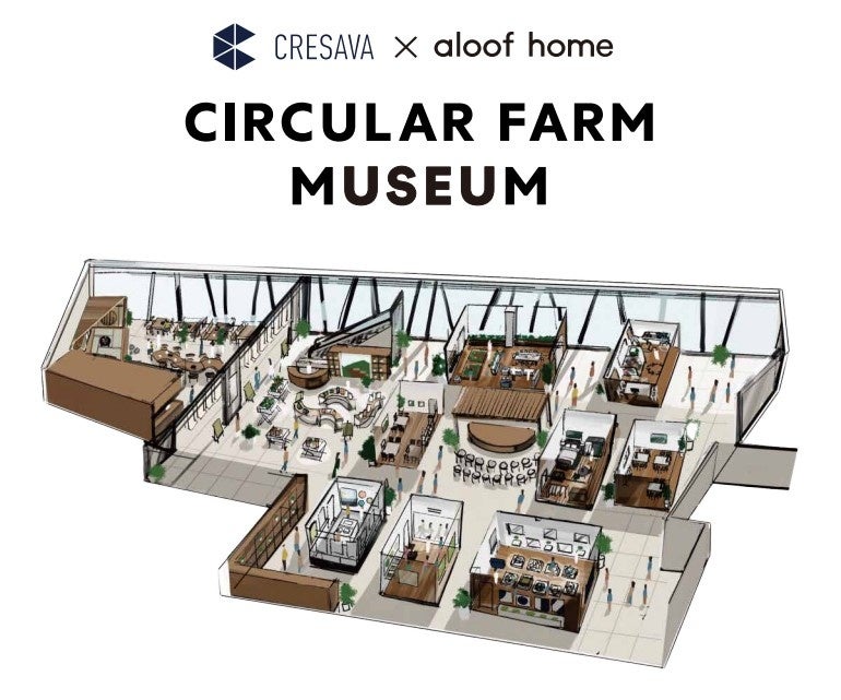 約400坪の広大なスペースに、“学び・体験・実践”をコンセプトとする5つのブースとポップアップスペースを設け、京都・美山の農園で育った野菜やスイーツを揃えたマルシェや、京都の地産地消食材を使ったメニューを提供するレストランバー「YUBA」※を併設。衣と食の循環型テクノロジーを応用した「サーキュラー ファーム」のビジネスモデルの認知拡大を図ってまいります。ショップスペースでは、天然素材を用いたライフスタイルブランド「アルーフホーム」による、衣類の回収カウンターも設置。クレサヴァの循環モデルをワンフロアで体感することができます。