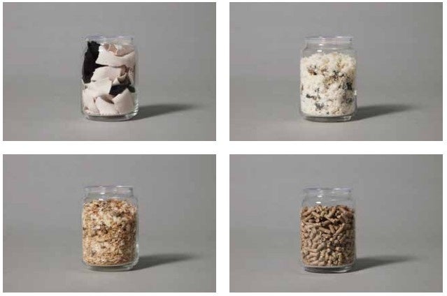 破砕した素材を、粉砕機でさらに細かく、糸状の繊維に粉砕します。このプロセスにより、発酵が促進されます。