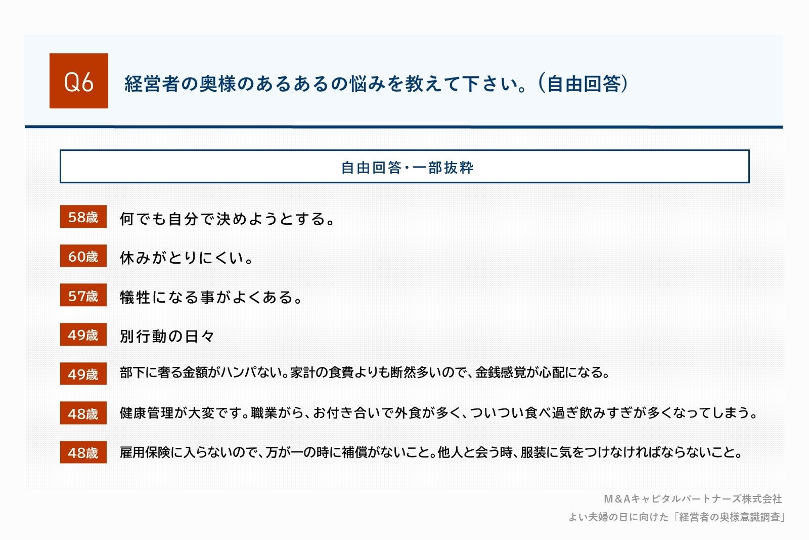 -経営者の奥様の悩み、「休みがとりにくい」や「健康管理」など-