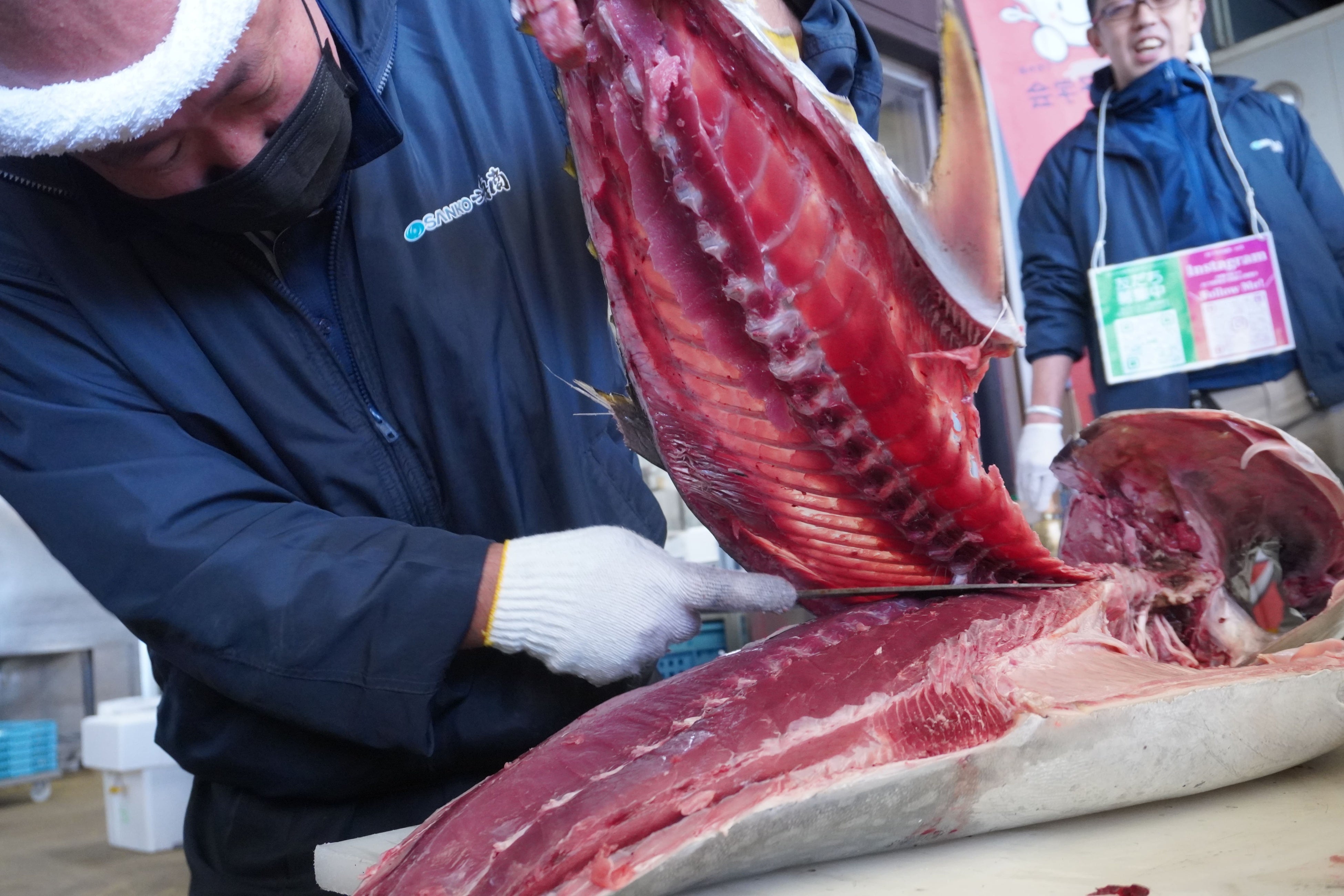 迫力のエンターティメント、『まぐろ解体ショー』
