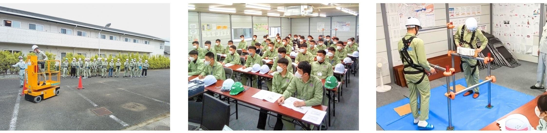 関東研修センターでは、⼊国後講習後の配属前に講習施設で特別教育を終わらせてから配属させたいとのお声を多くいただき、足場の組立等作業従事者、フルハーネス特別教育(実技あり)、高所作業車等の特別教育を受講できる体制を整えました。