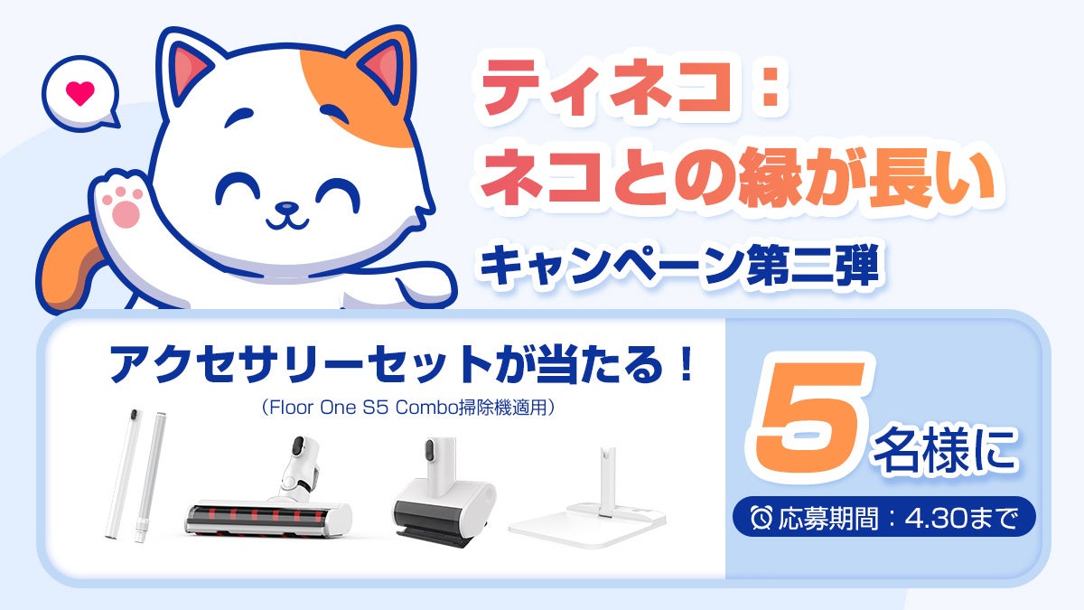 エコバックスグループ(ECOVACS)傘下子会社のティネコインテリジェント株式会社(以下、Tineco)が2023年4月23日——4月30日期間中、「ティネコ:ネコとの縁が不思議・プレゼント・キャンペーンを実施いたします。