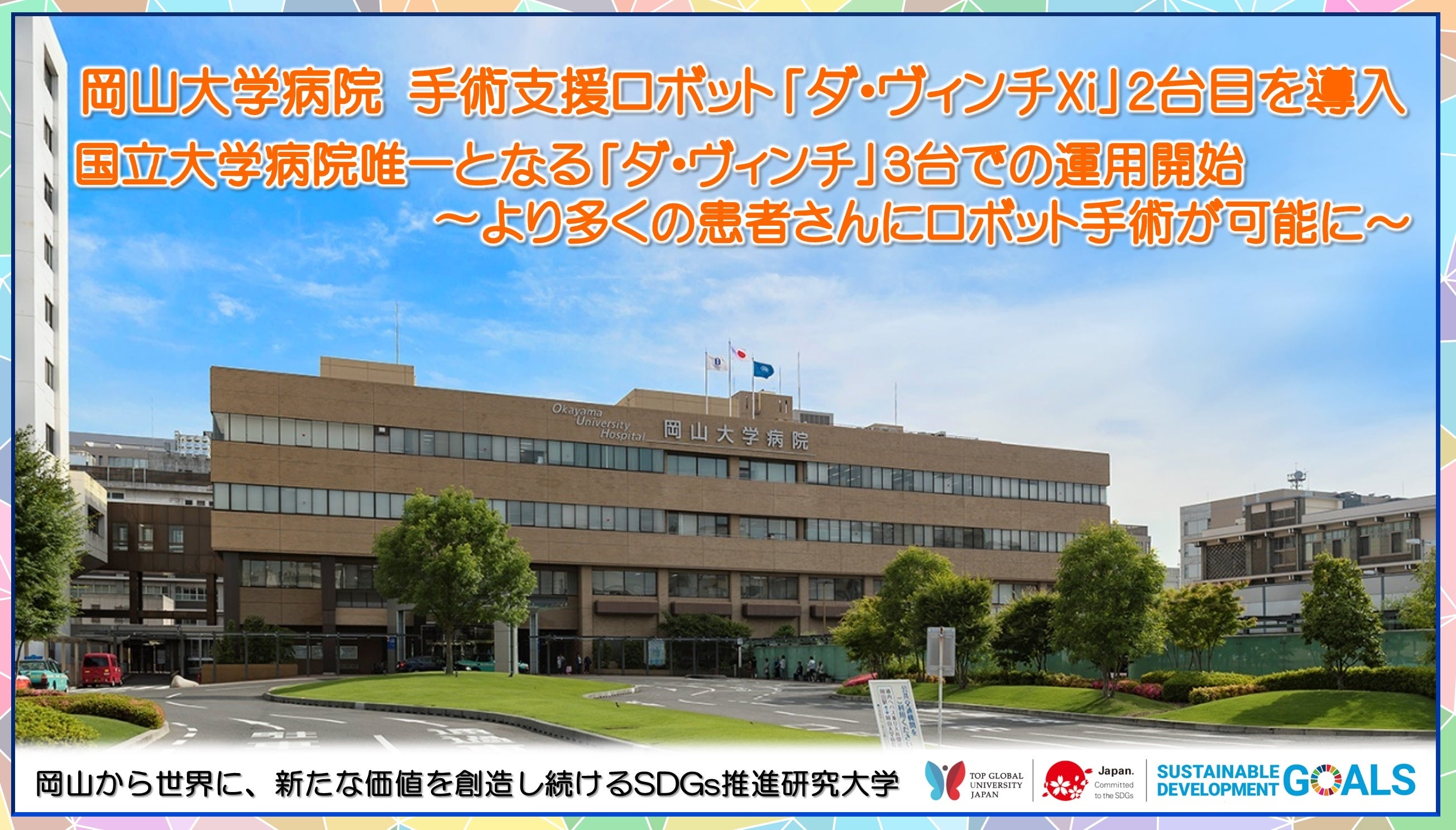 - 岡山大学病院は、手術支援ロボット「ダ・ヴィンチ Xi」の2台目を導入し、2023年4月よりダ・ヴィンチ3台での運用を開始しました。