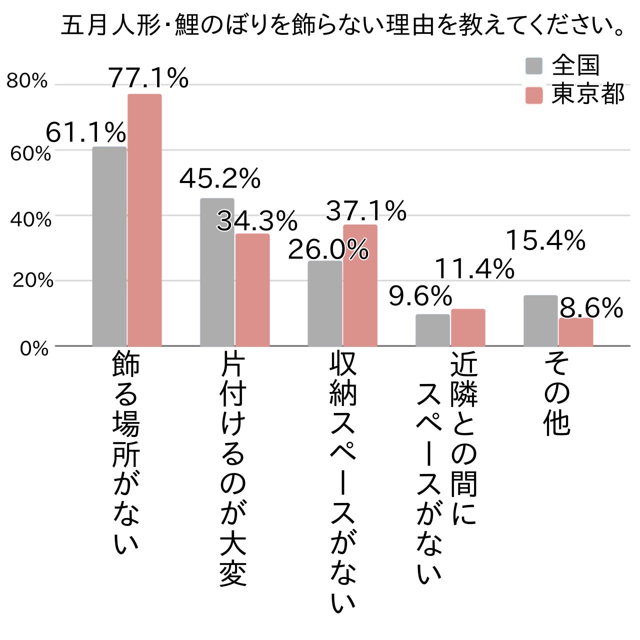 東京都において端午の節句の飾り付けをする方の割合が少ない背景には自宅スペース・収納スペース不足が大きく影響しているようです。