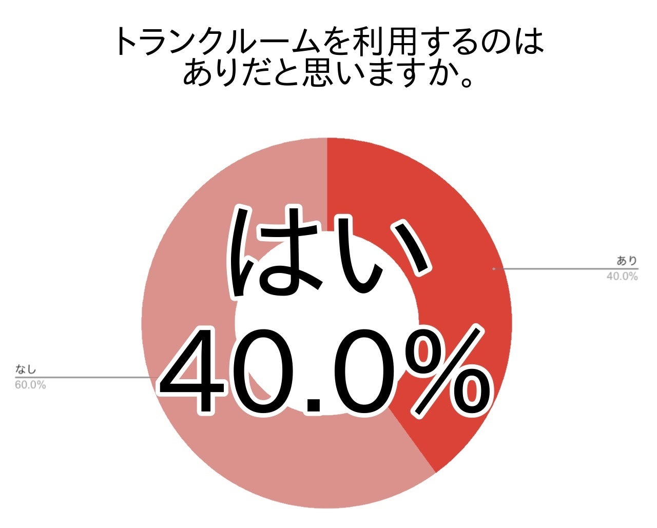 アンケートではトランクルームを利用する方法を良いと感じた方は東京都で4割(40.0%)でした。全国でも28.0%の方が「あり」と評価しました。
