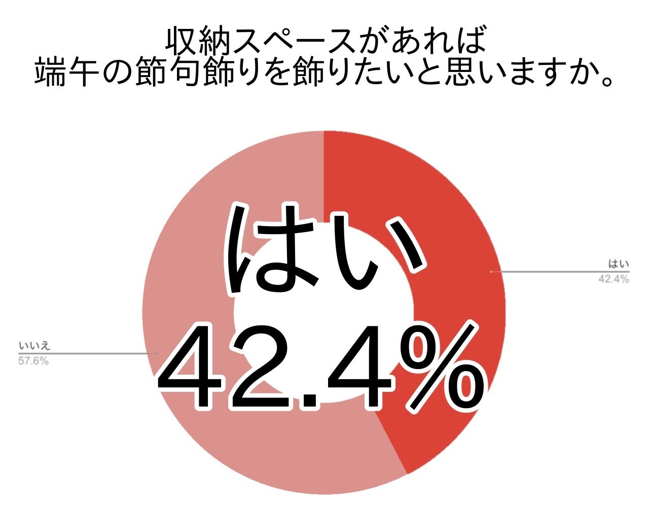 アンケートでは、東京都にお住まいの方で収納スペースがあれば端午の節句飾りを飾りたいと答えた方は4割超(42.4%)でした。