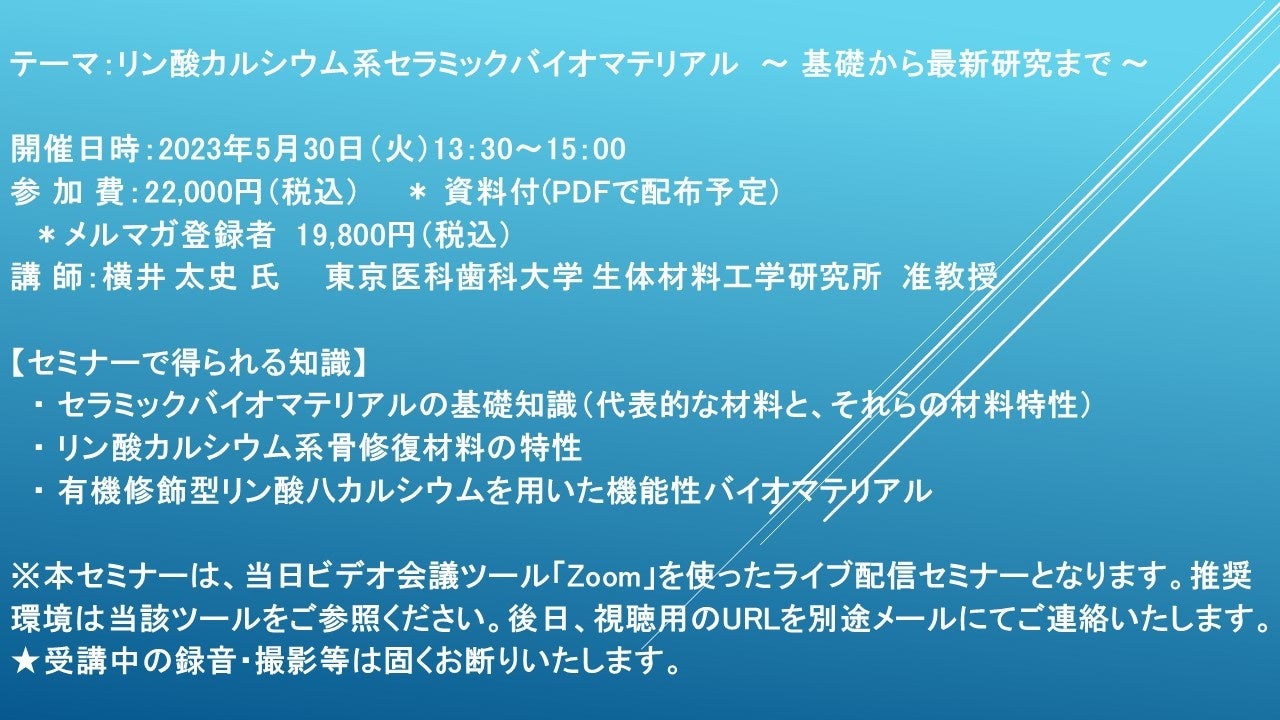 テーマ:リン酸カルシウム系セラミックバイオマテリアル~ 基礎から最新研究まで ~