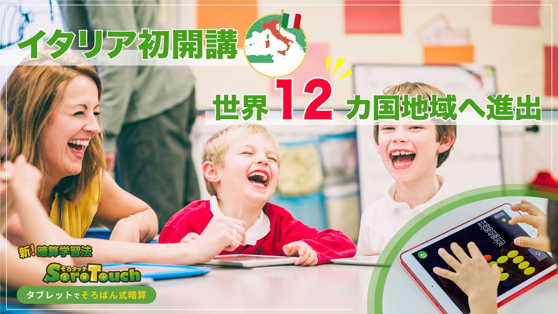 イタリア開講教室HELLO KIDSは、2009年にミラノ初の子供向け英会話スクールとして開講、その後、ドラマクラスや様々なコンテンツ(算数、理科など)を英語で教えるプロジェクトを公立の学校と協力し実施。”Maximize the results” 結果を最大限にをモットーに人気の英会話スクールとして注目されています。HELLO KIDSを運営するSilvia氏は、『イタリアの算数教育は6歳からのスタート、そろばん教育も導入されているが、そろタッチのようなものは全く新しく、ゲーム要素も重視するイタリアやヨーロッパでの、今後のそろタッチの広がりが楽しみです』と述べています。