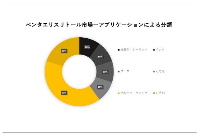 塗料およびコーティングの製造における構成的有用性―ペンタエリスリトールは、爆薬、プラスチック、塗料、化粧品など、さまざまな商業製品の製造にさまざまな用途を提供します。膨張性塗料およびコーティングにおいて、酸供与体であるポリリン酸アンモニウム (APP) とともに炭素供与体として機能します。さらに、アルキド樹脂、ポリ塩化ビニル (PVC) 安定剤、ワニス、トール油エステル、オレフィン系酸化防止剤などの成分は、ペンタエリスリトールに由来します。これらの化合物は、四塩化炭素、アセトン、グリセロール、エタノールなどの有機溶媒に高い溶解性を示し、無毒の塗料や表面コーティング ソリューションを提供します。