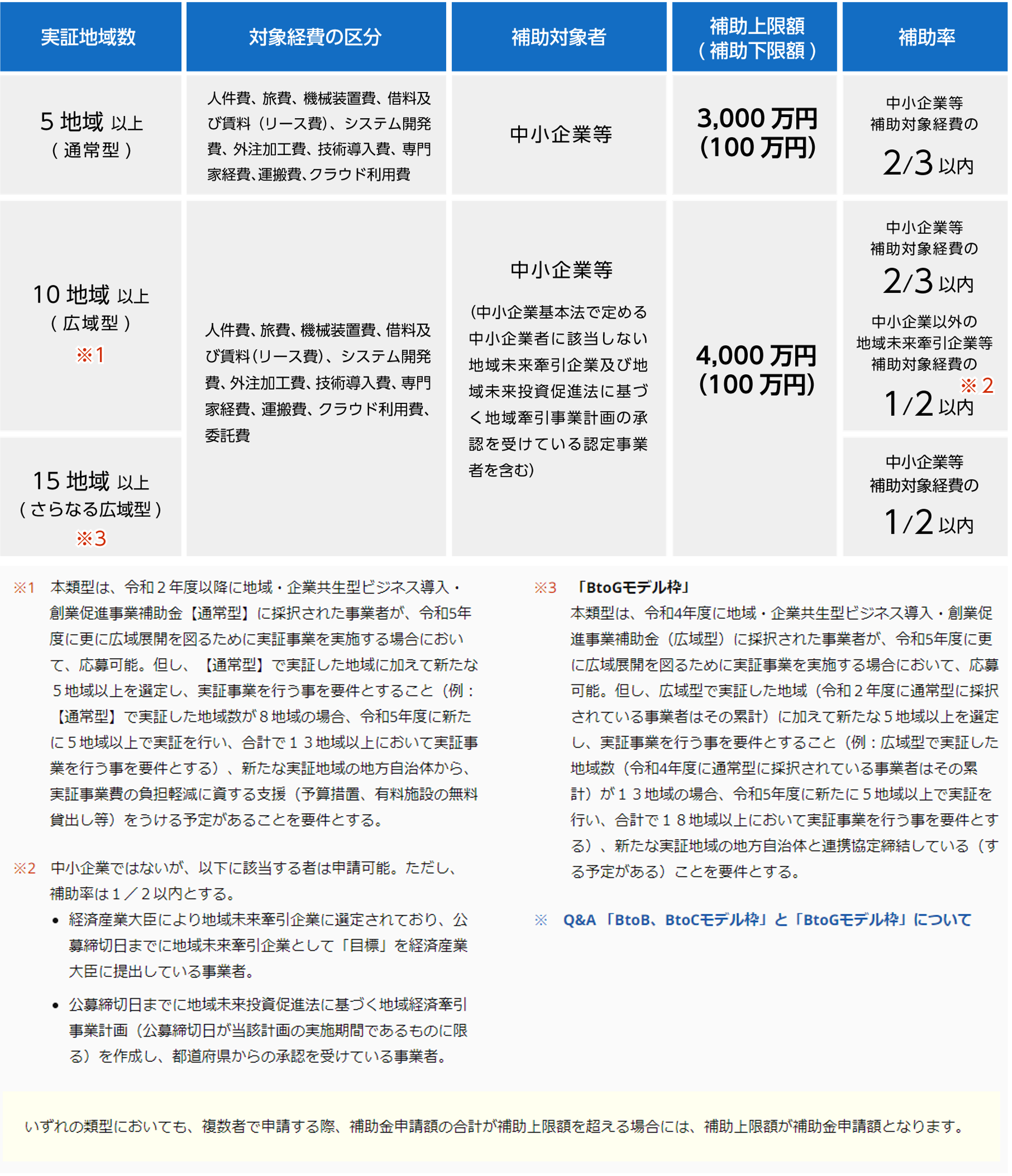 地域の単独もしくは、複数の中小企業等が地域内外の関係主体と連携しつつ、複数の地域に共通する地域・社会課題について、技術やビジネスの視点を取り入れながら、複数地域で一体的に解決しようとする事業(実証プロジェクト)について、その経費の一部を補助することにより、中小企業者等の地域・社会課題解決と収益性との両立を目指す取り組みである「地域と企業の持続的共生」を促進し、地域経済の活性化を実現することを目的とします。